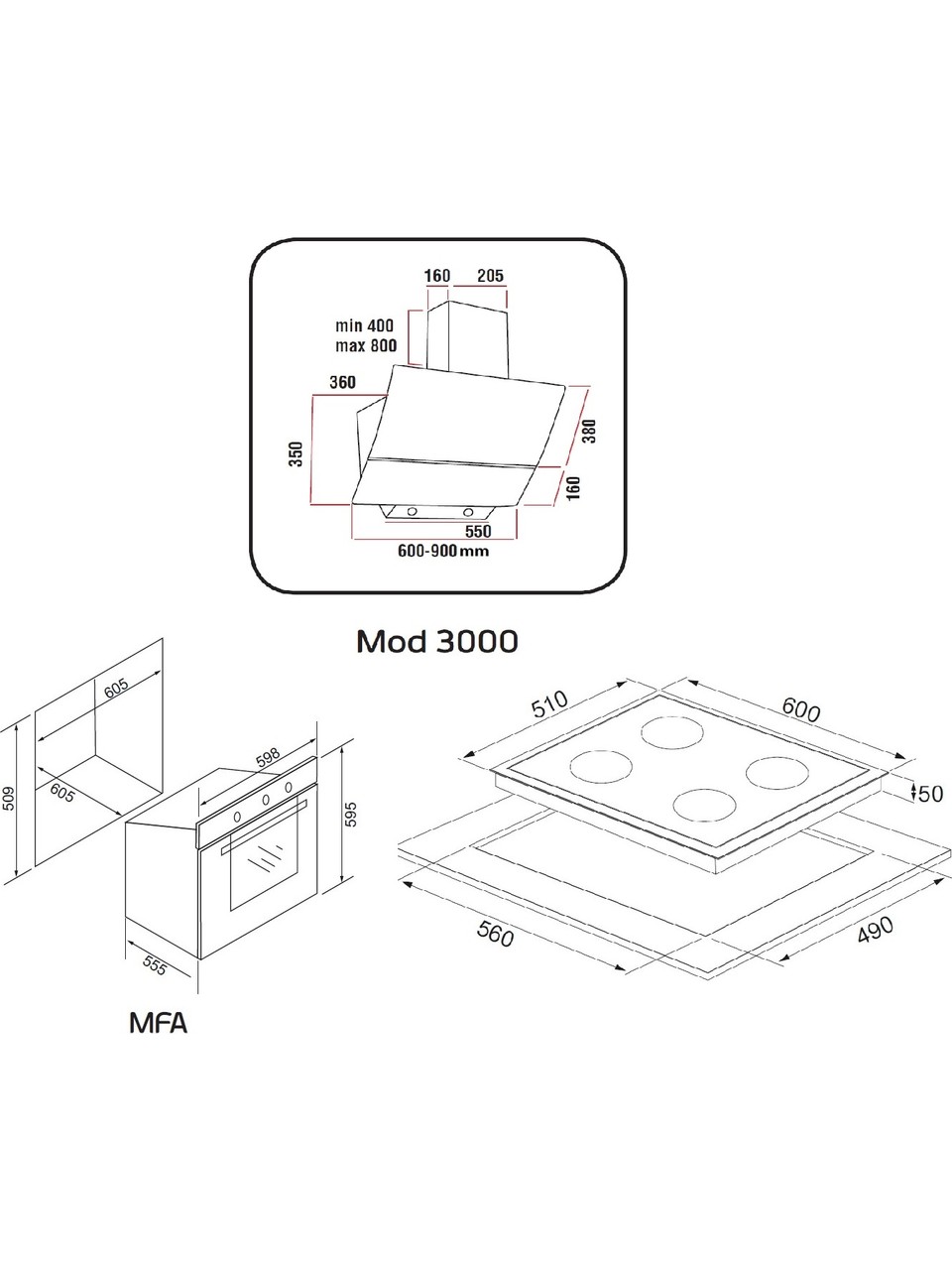 - Alveus Premium 3'lü Siyah Ankastre Set (MOD3000-GLS640-MFA627)