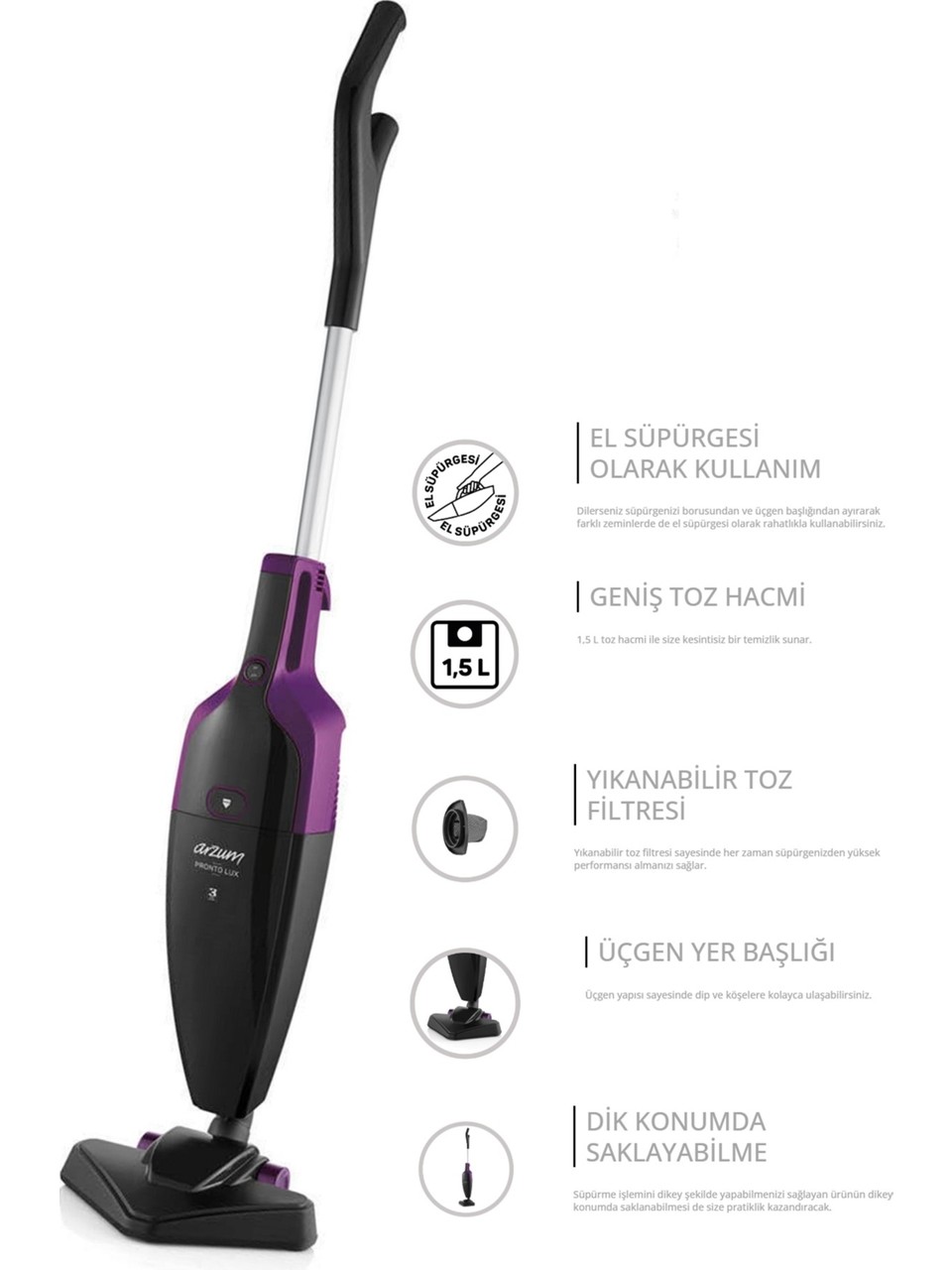 - Arzum AR4075 Pronto Lux 2'si 1 Arada 800 W Dikey Süpürge