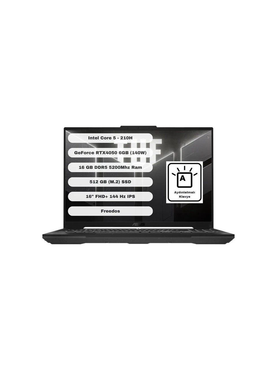 - Asus TUF Gaming FX607VU-RL017 Intel Core 5 210H 16GB 512GB SSD RTX4050 Freedos 16" Taşınabilir Bilgisayar