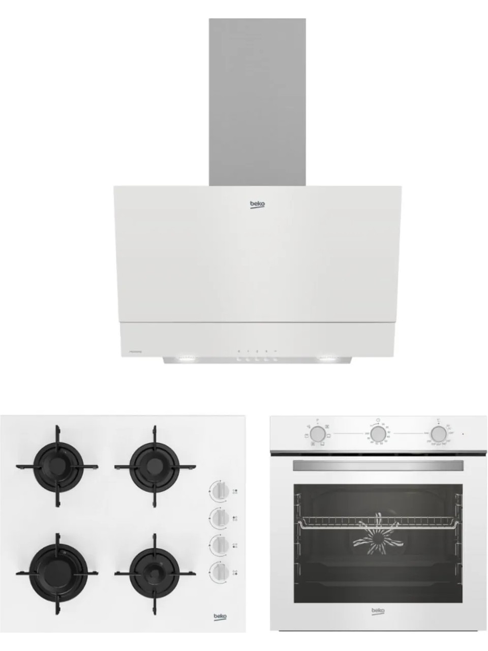 Beyaz Cam Avantaj Ankastre Set - 3’lü Ankastre Set (Fırın + Ocak + Davlumbaz)