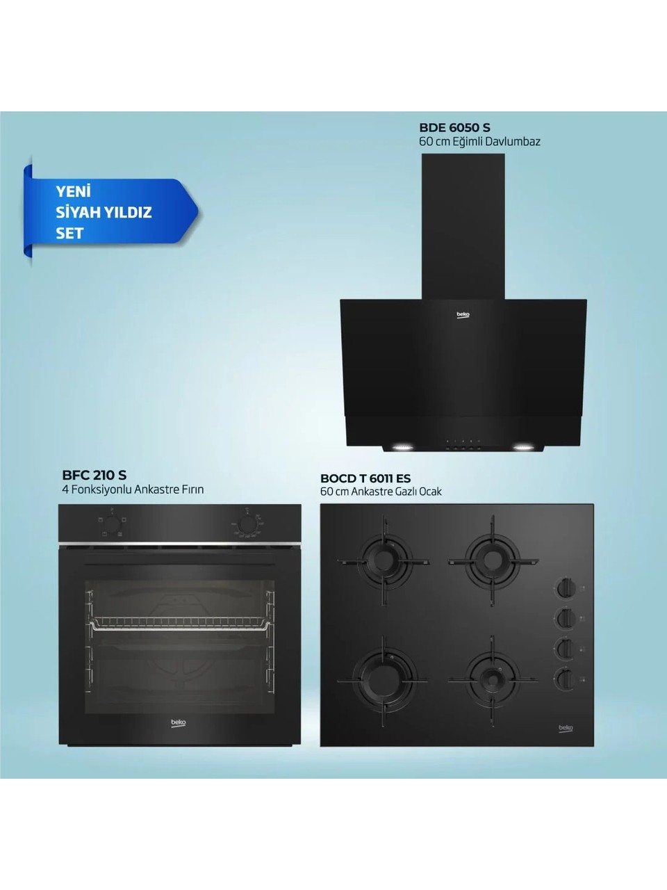 Beko Black Star 3'lü Ankastre Set 5 ( Bfc 210 S - Bocd T 6011 Es - Bde 6050 S )