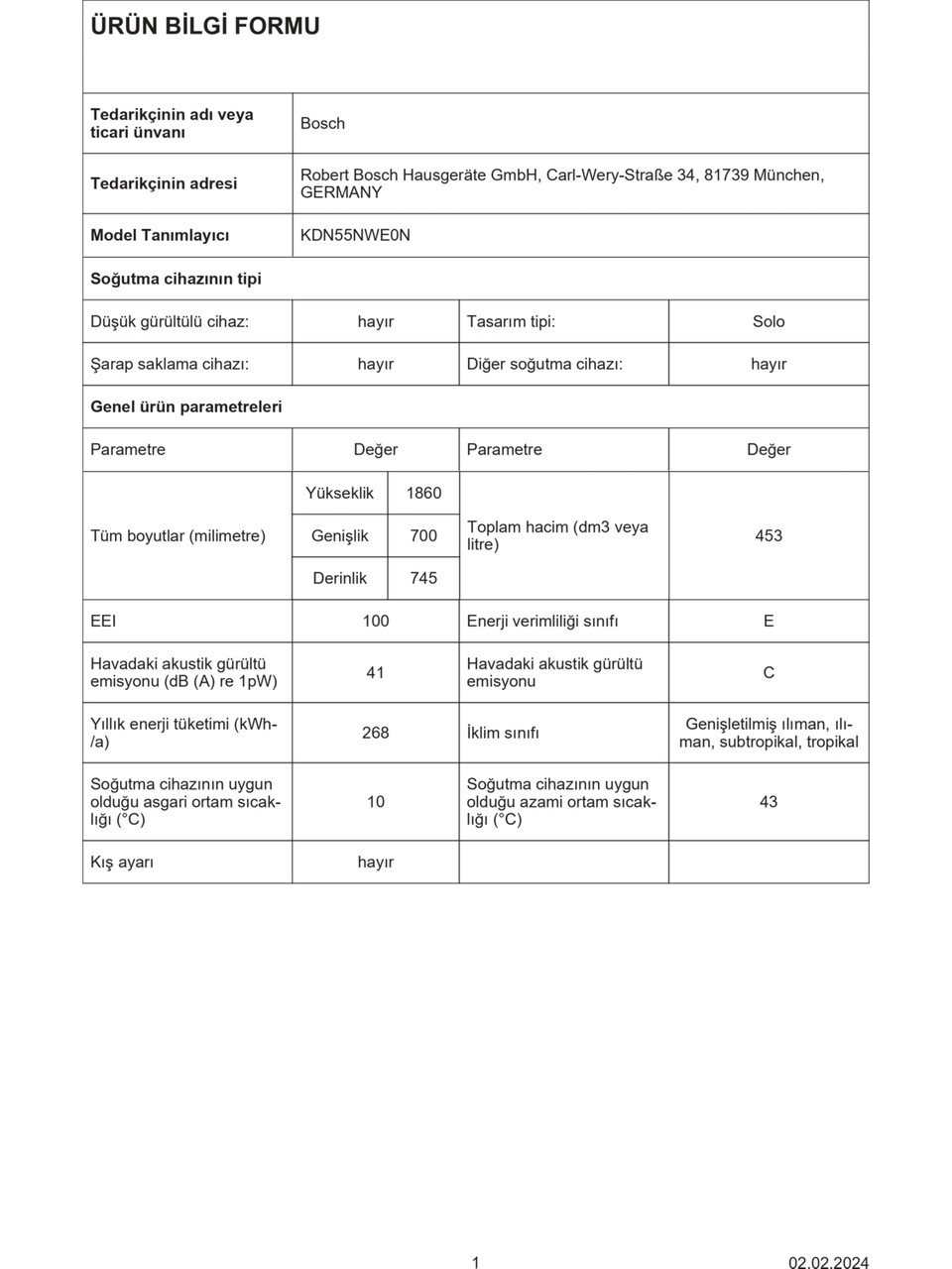 Bosch KDN55NWE0N 453 Lt No-Frost Buzdolabı