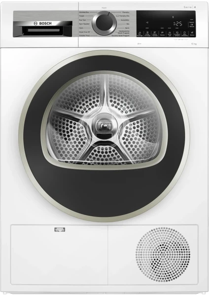 Serie 4, Isı Pompalı Kurutma Makinesi, 10 kg WQG25100TR A++ enerji sınıflı kurutma makineleri ile yüksek enerji verimliliği.- çamaşır kurutma makinesi - isi pompasi- beyaz Güç/Tüketim- Enerji Verimlilik Sınıfı¹: A++- Enerji Tüketimi²: 282 kWh- Kapasite: 1 - 10 kg Programlar- Özel programlar: Yünlülerde son uygulama, Mix, Havlu, Süreli program kurutma, Süreli program havalandırma, Spor giysileri, Kaz tüyü, Süper kısa 40', Gömlek/Bluz Opsiyonlar- Kırışık azaltma sistemi: Program sona erdikten sonra 120 dakika çamaşırları kırıştırmadan muhafaza etme- Dokunmatik tuşlar: Başlat/Beklet, Hassas, Sinyal, Kırışık azaltma, 24 saat Kalan süre Konfor/Güvenlik- Kondanser koruma filtresi- DuoTronic- Nem kontrollü, süreli ve özel pogramlar için tam elektronik kullanıım- Hassas kurutma sistemi: Çamaşırları koruyan büyük Çelik tambur ,soft tasarım pedallar- Anti-vibration yan duvar tasarımı: Sessiz yıkama performansını destekler.- Su tahliye hortumu- Çocuk kilidi- Program bitiminde akustik sinyal- Comfort lock- kapı menteşesi: sağda- Metal kapı menteşesi Teknik bilgi- Tezgahaltı- Boyutlar(Y x G x D): 84.2 x 59.8 x 61.3 cm- Cihaz derinliği (duvar mesafesi dahil): 61.3 cm- Cihaz derinliği (Kapak dahil): 64.8 cm- Açık kapı ile cihaz derinliği: 109.6 cm Enerji Verimliliği Sınıfları Ölçeği (A+++'dan D'ye) 2 Tam ve kısmi yükte standart pamuklu programın 160 kurutma döngüsüne ve düşük güç modlarının tüketimine da
