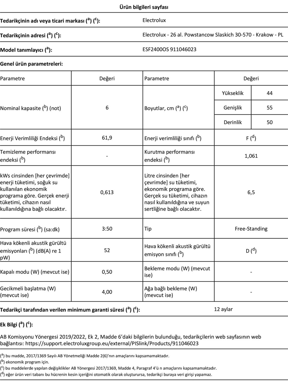 Electrolux ESF2400OS 6 Programlı Tezgâh Üstü Bulaşık Makinesi, mutfağında alandan tasarruf etmek isteyenlere, bulaşık makinası için daha esnek yerleşim alanları arayanlara tam istediği o özelliği sunuyor. İsteğe göre tezgâh üzerinde kullanabilirken isteğe göre daha yükseğe monte edilerek daha fazla yaşam alanı açıyor. Kalan süre göstergesi ve tasarımıyla kullanım kolaylığı sağlarken oldukça kısa sürede bulaşıklarınızı tertemiz yapan programıyla da zamanı sizin daha değerli kılıyor. Kısaca hayatında her alanında, gerek zaman gerek yer kullanımında özgür olmayı tercih edenler için aranılan esnekliği sonuna kadar sağlıyor. Tüm bunların yanı sıra kurulum için gerekli olan materyaller, kullanım kılavuzu ve garanti belgesi cihazın kutusuyla birlikte size ulaştırılıyor.