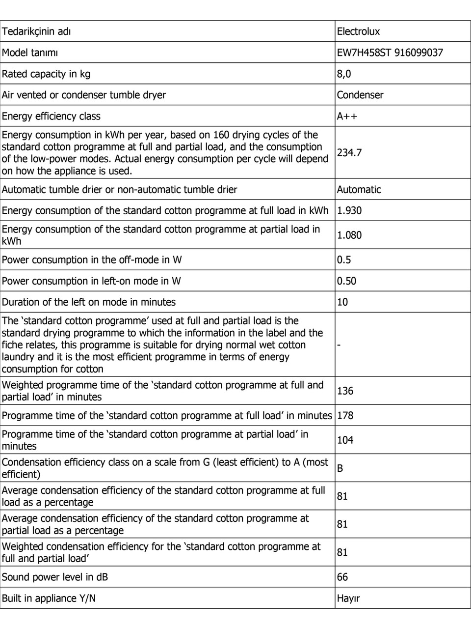 - Electrolux EW7H458ST PerfectCare 700 8 kg Isı Pompalı Kurutma Makinesi