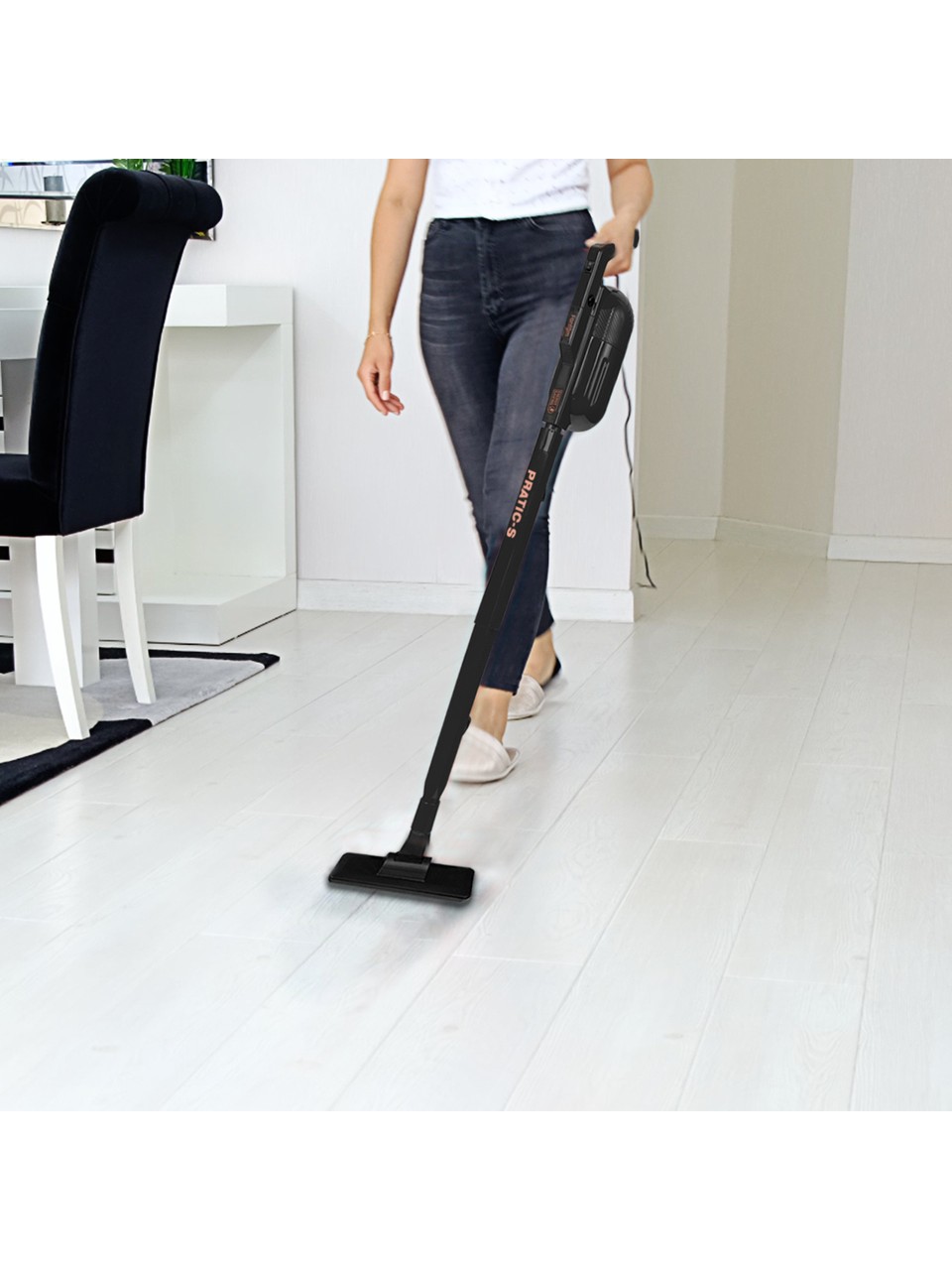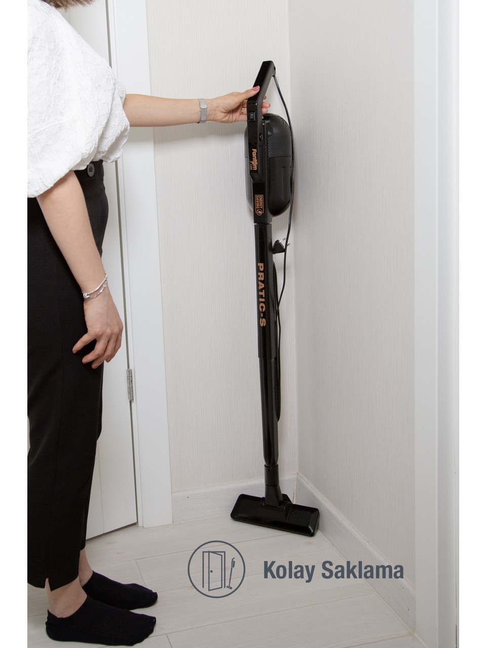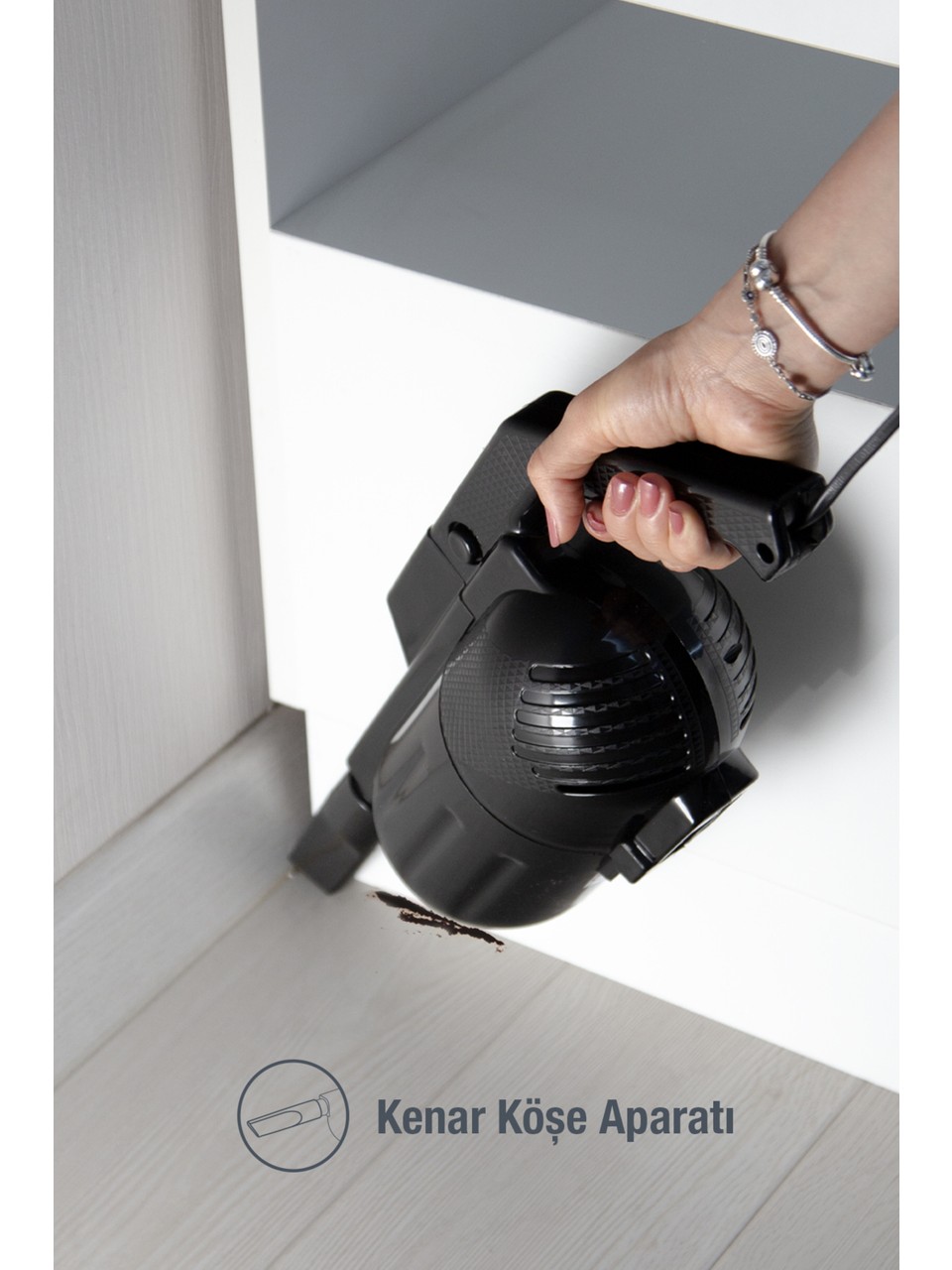 Küçük ve ergonomik bir yapısı olan süpürge, en dar alanlara bile çok rahatlıkla sığabilir.