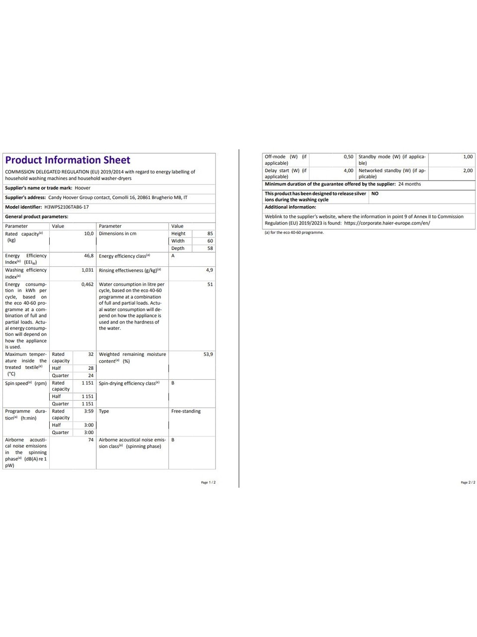 - Hoover H3WPS2106TAB6-17 10 kg Wi-Fi + Bluetooth Bağlantılı 1200 Devir Çamaşır Makinesi