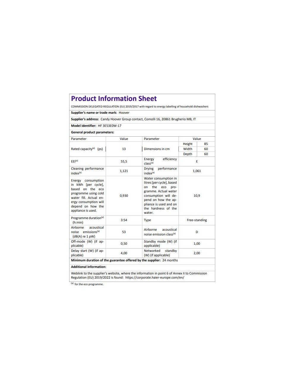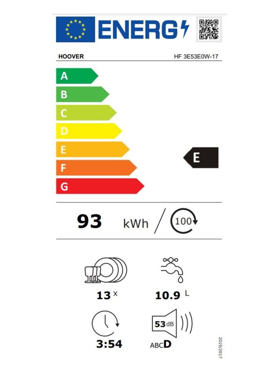 - Hoover HF 3E53E0W-17 5 Programlı Beyaz Bulaşık Makinesi