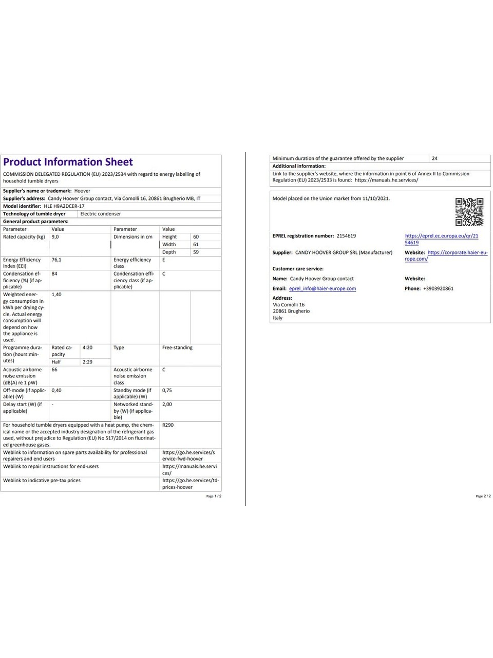 - Hoover HLE H9A2DCER-17 9 kg Wi-Fi + Bluetooth Bağlantılı Isı Pompalı Kurutma Makinesi