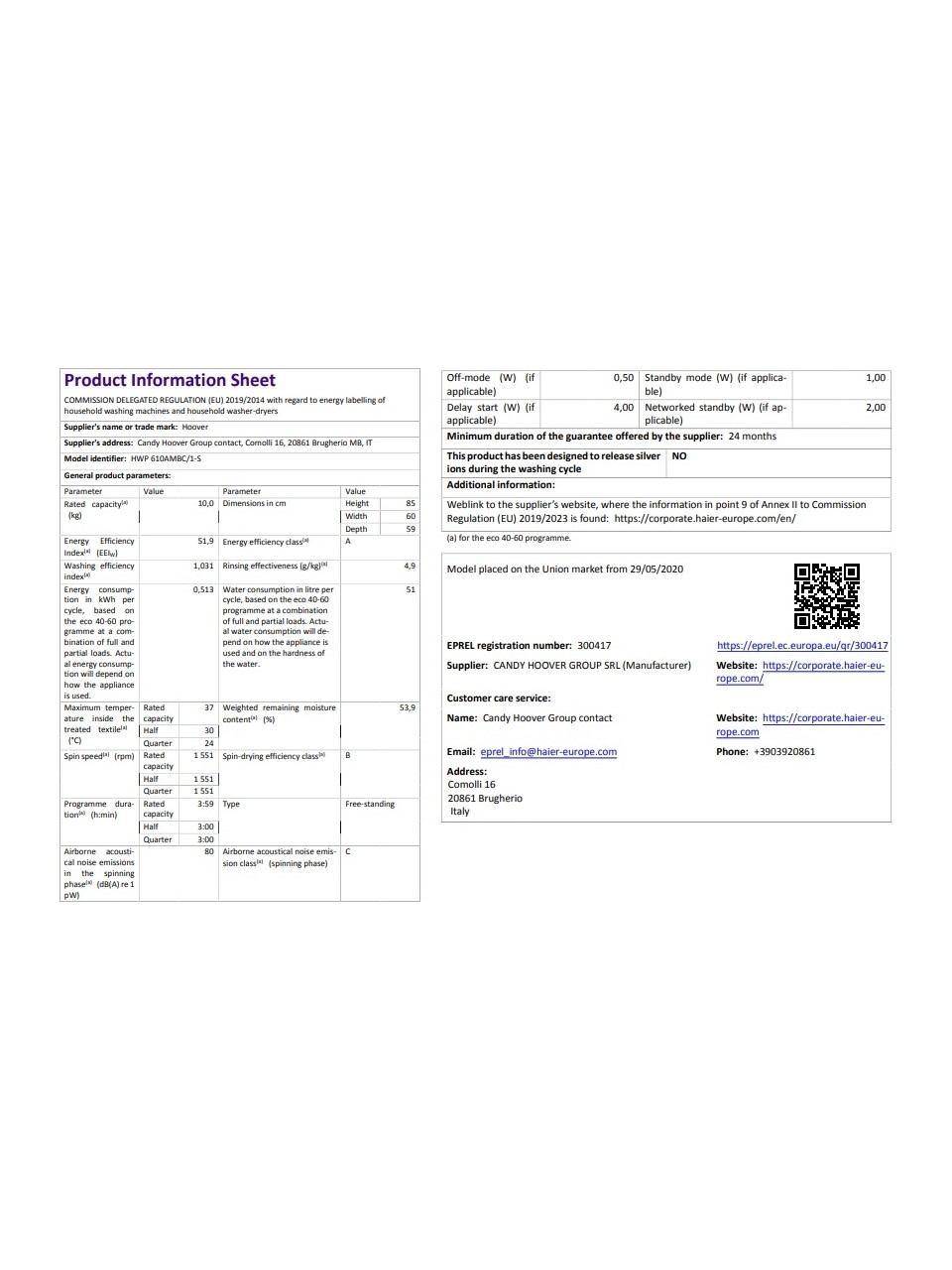Hoover HWP 610AMBC / 1-S 10 kg Wi-Fi + Bluetooth Bağlantılı 1600 Devir Çamaşır Makinesi