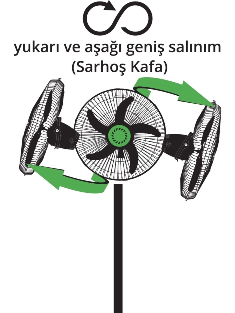 ● 180 derece dönebilme özelliği geniş bir serinlik alanı sunar.