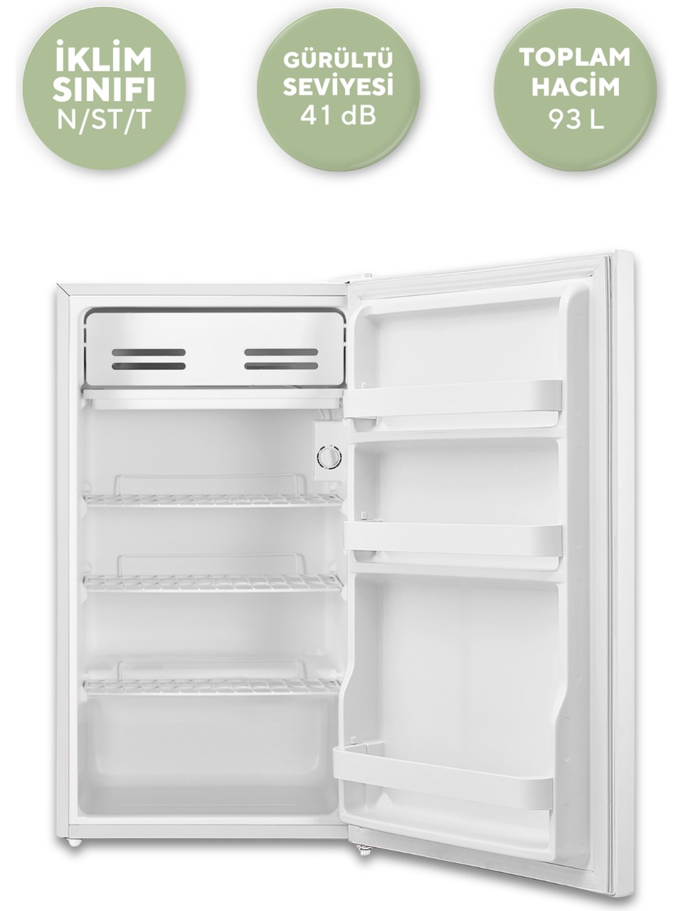 - 93 L toplam net hacim; mini buzluk ile günlük ihtiyaçlara uygun