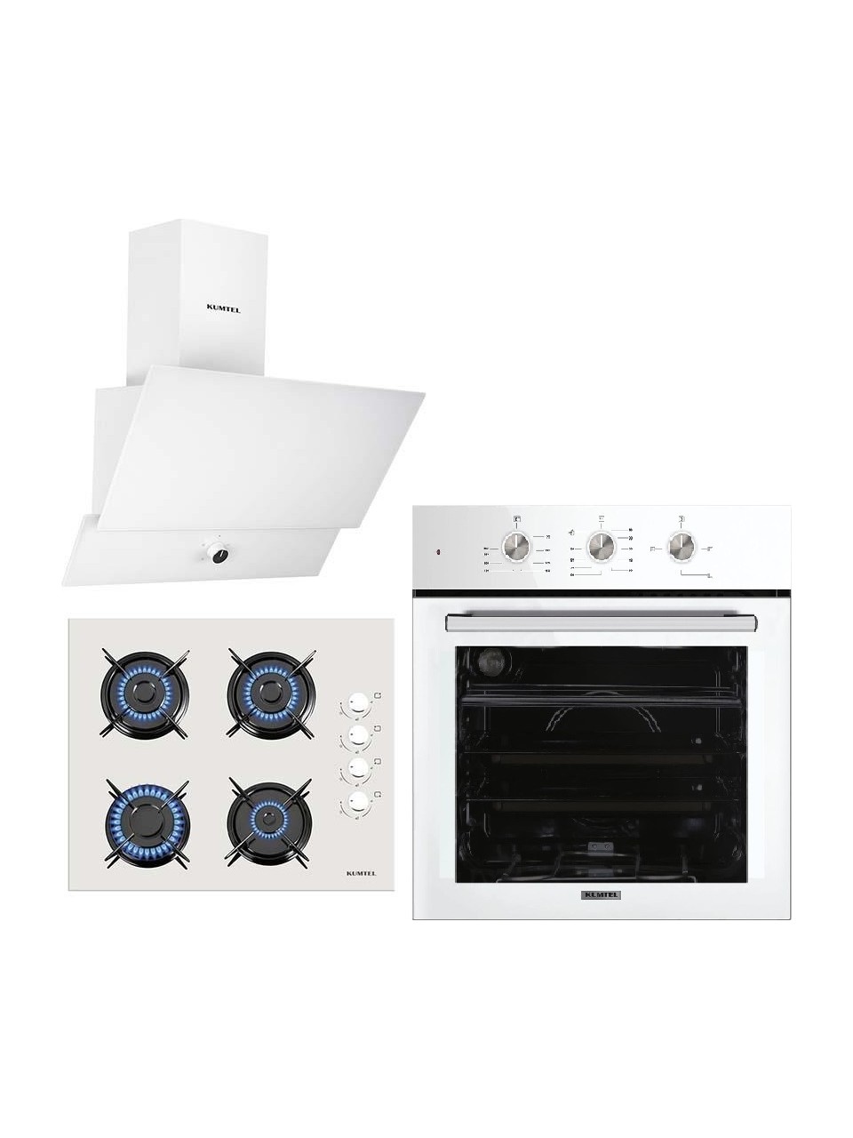 - Kumtel Beyaz Cam Ankastre Set (DA6-830 Beyaz Davlumbaz + KO-40TAHDF Ankastre Beyaz Ocak + B66 - S2 (Mt) 3 Pro 3 Düğme(Plus)