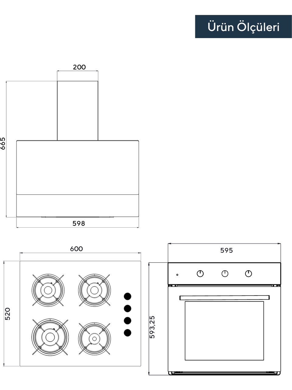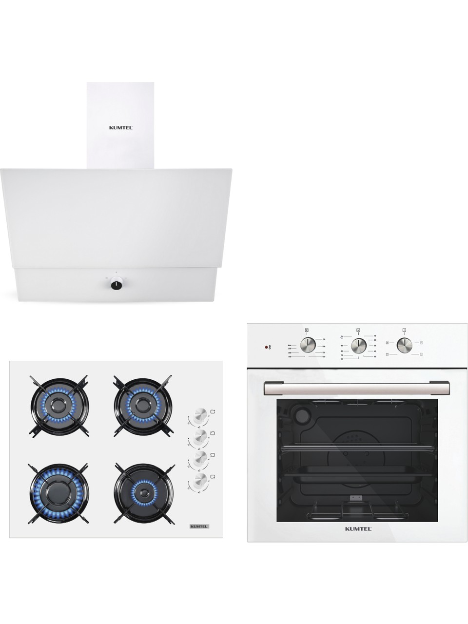 - Kumtel Kristal Beyaz Cam Ankastre Set (DA6-830 Davlumbaz + KO-40 TAHDF Ocak + B66-SF2 Fırın)