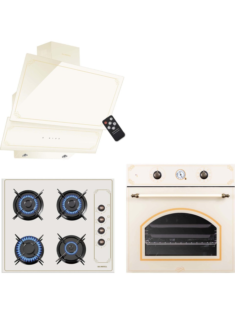 KUMTEL DA6-835 BEJ RUSTİK CAM DAVLUMBAZ Yüksek emiş gücü Uzaktan kumandalı , 3 Hız kademeli Güçlü led aydınlatma Bulaşık makinesinde yıkanabilir alüminyum filtre Dokunmatik cam kontrol paneli KUMTEL KO-40TAHDF ANK. BEJ RUSTİK OCAK Gaz emniyet sistemli 4 gözü gazlı Otomatik düğmeden çakmaklı Doğalgaza ayarlıdır. LPG 'ye dönüşüme uygundur KUMTEL B66-SF2(AT)(4PRO) BEJ ANKASTRE RUSTİK FIRIN enerji Turbo Fan ve Güçlü iç aydınlatma Ayarlanabilir termostat ve analog rustik zamanlayıcı 4 pişirme fonksiyonu Tel ızgara ve 2 adet geniş emaye pişirme tepsisi 1900 Watt Geniş iç hacim Cam kontrol paneli