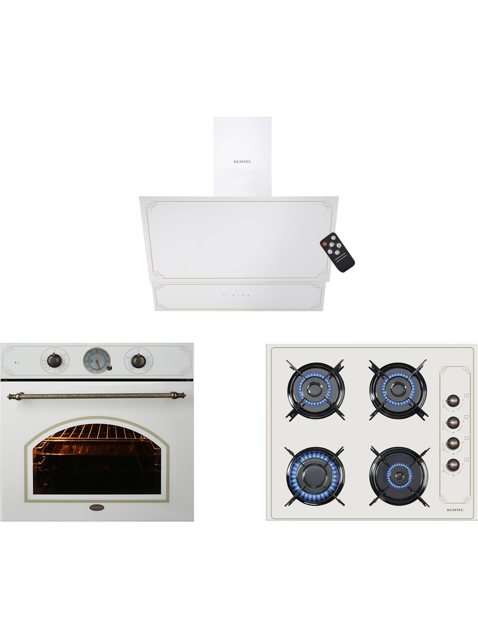 - Kumtel Rustik Beyaz Cam Ankastre Set ( DA6-835 Beyaz Dav KO-40TAHDF Ocak B66-SF2(AT)