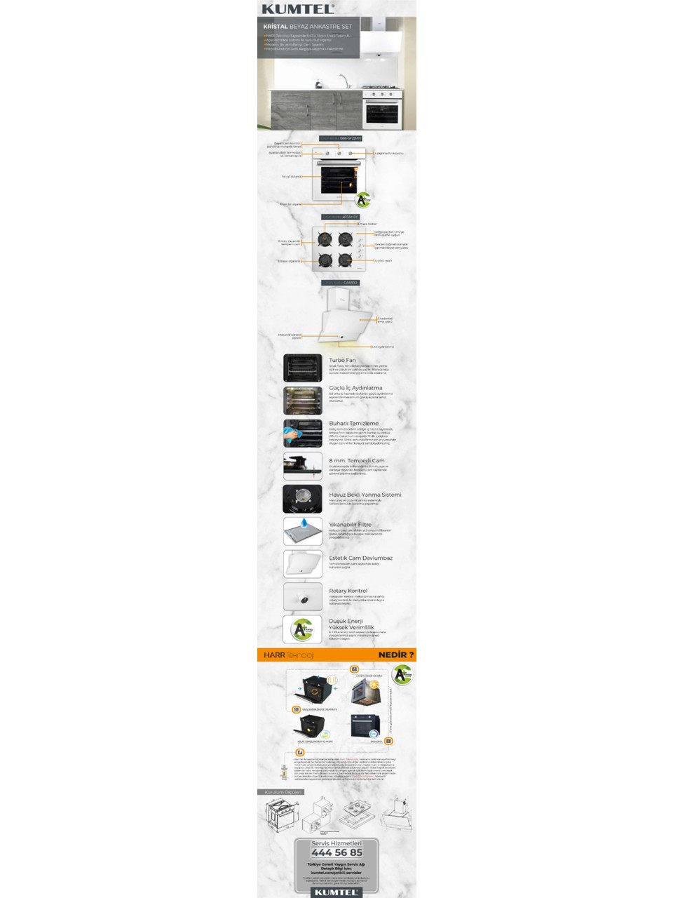 - Kumtel Turbo Kristal Beyaz Cam Ankastre Set (DA6-830 Davlumbaz + Ko-40 Tahdf Ocak + B66-SF2 Fırın)