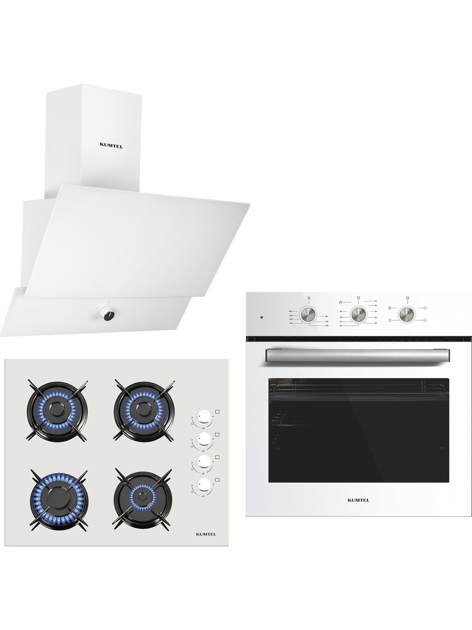 Kumtel Turbo Kristal Beyaz Cam Ankastre Set (DA6-830 Davlumbaz + Ko-40 Tahdf Ocak + B66-SF2 Fırın)