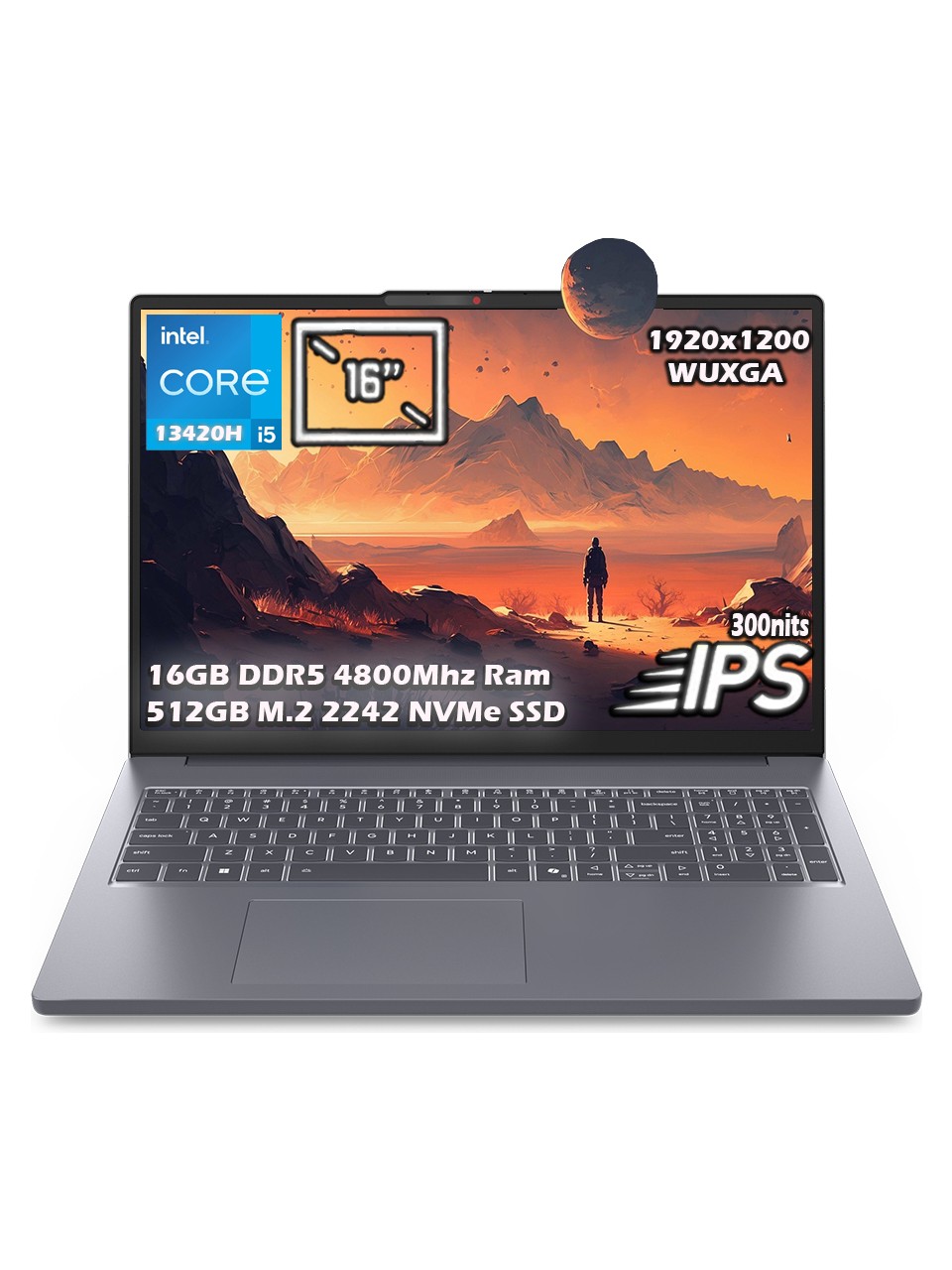 16 inç geniş ekran boyutu, daha fazla çalışma alanı sunar. WUXGA (1920x1200) çözünürlük ve IPS panel teknolojisi sayesinde daha canlı renkler, geniş görüş açıları ve göz konforu sağlanır. Bu sayede hem ofis kullanımı hem de medya tüketimi keyifli hale gelir.