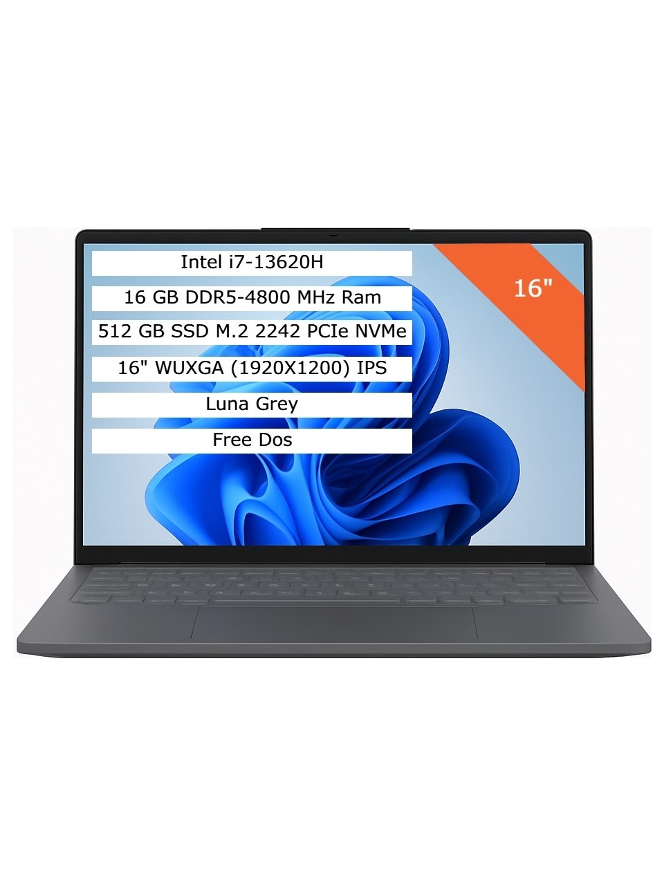 Lenovo Ideapad Slim 3 Intel Core i7 13620H 16gb 512GB SSD 16" Wuxga (1920X1200) IPS Panel Freedos Taşınabilir Bilgisayar 83K2001WTR