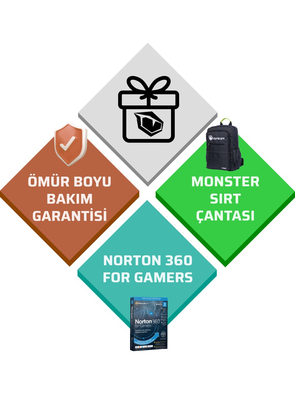 “1 Ağustos – 30 Eylül 2025 tarihleri arasında geçerli kampanya kapsamında, bilgisayarlarda geçerli 2 yıl süreli Uzatılmış Garanti paketi sunulmaktadır. Toplam 4 yıl garanti süresinden faydalanabilmek için, satın alınan ürünün 31.12.2025 tarihine kadar Monster Destek sayfası üzerinden seri numarasıyla kayıt edilmesi gerekmektedir”
