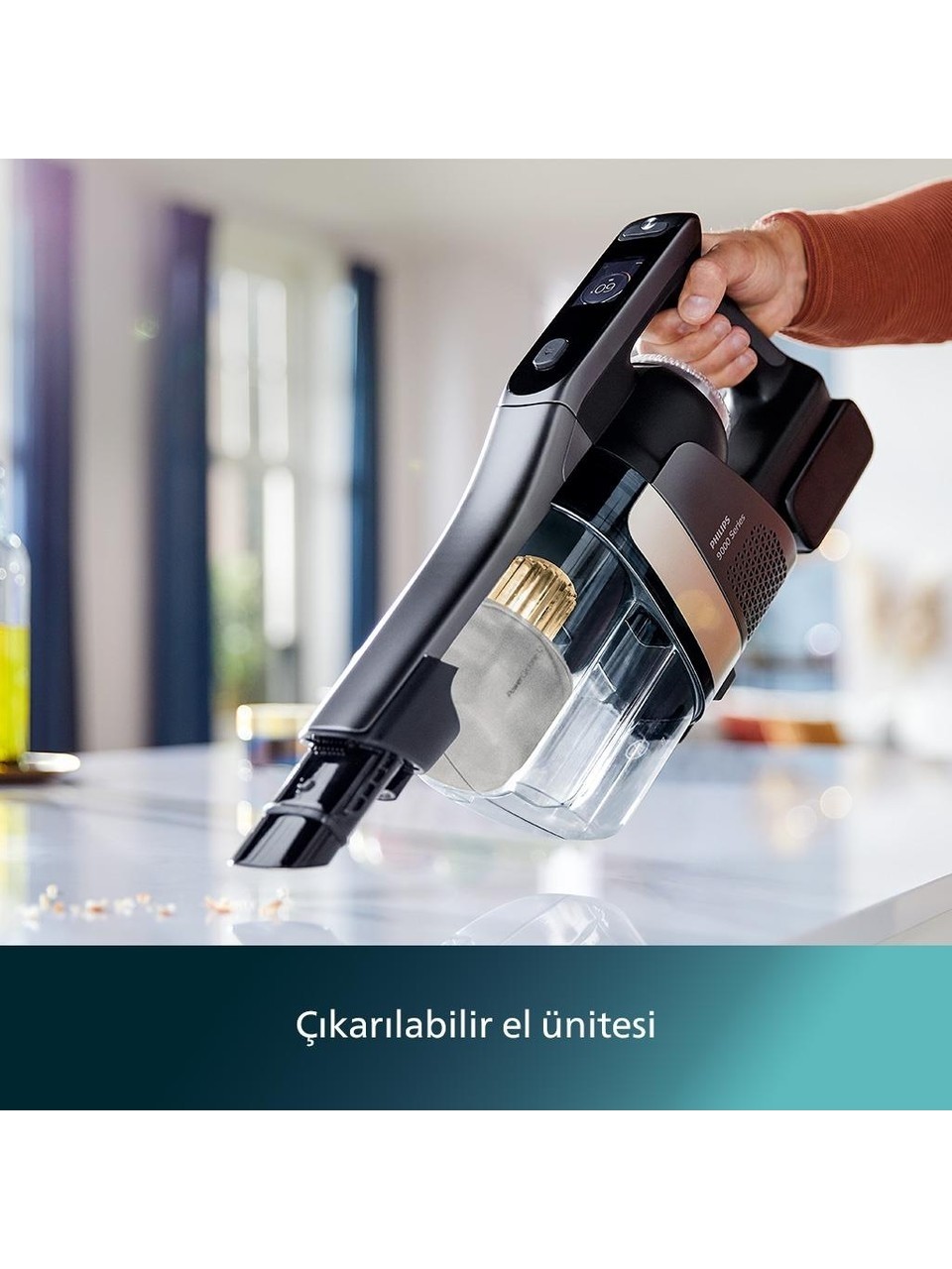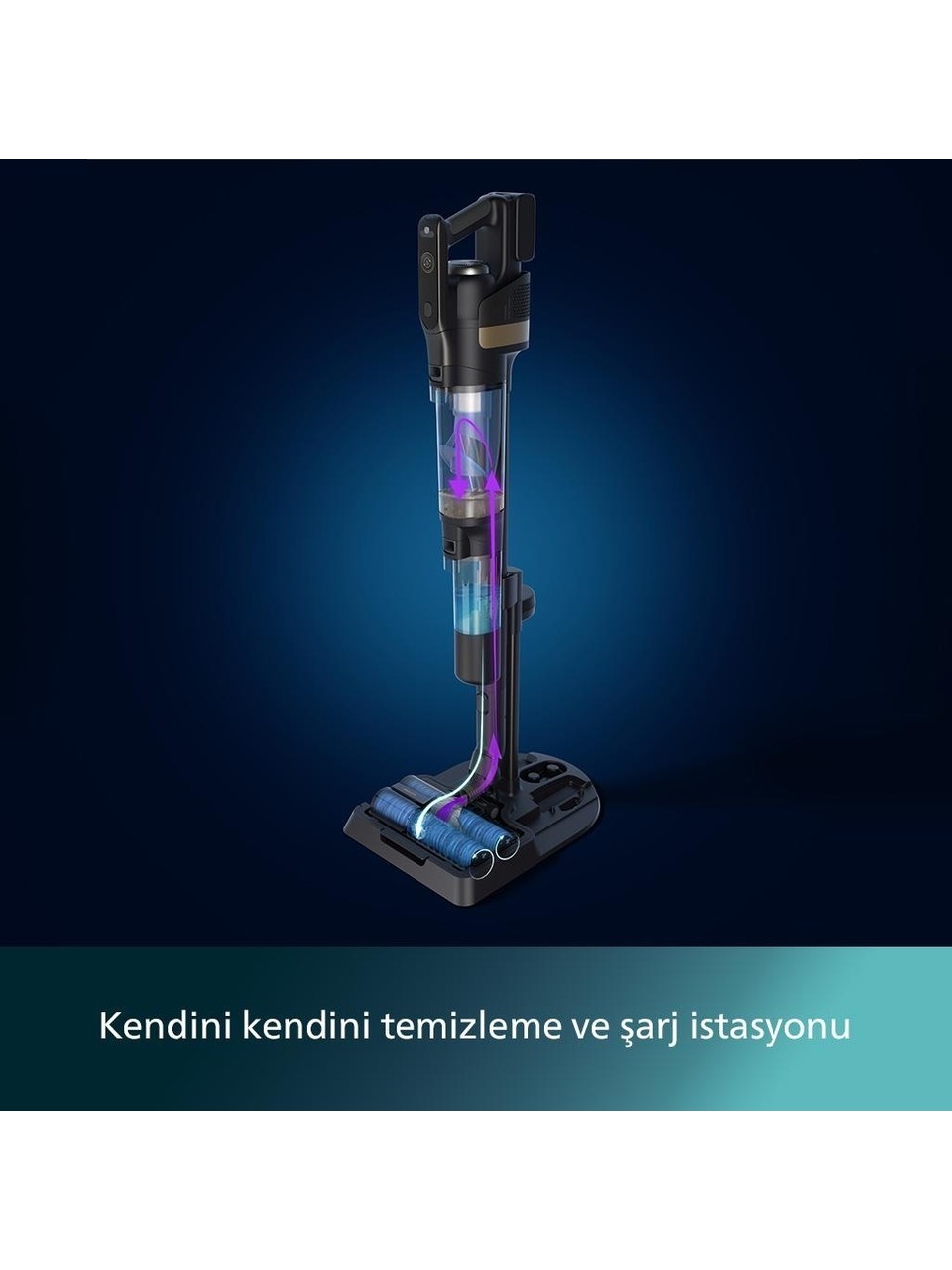 - Philips 9000 Serisi AquaTrio Kablosuz Dikey Süpürge, Otomatik Temizleme ve Şarj İstasyonu, AquaSpin Başlık, PowerCyclone Aqua