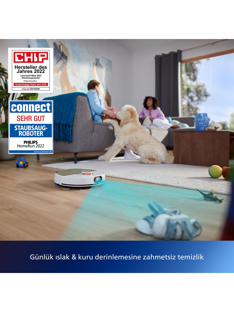 - Philips XU700002 7000 Serisi HomeRun Aqua Islak Kuru Robot Süpürge, Sarj İstasyonlu, İpek Beyaz ve Altın Sarısı