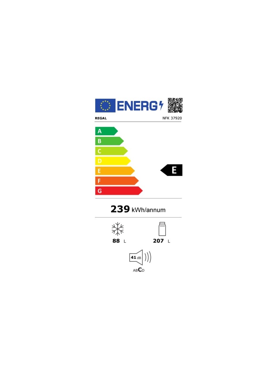 Regal Nfk 37920 E Enerji Sınıfı 294 Lt No Frost Kombi Buzdolabı