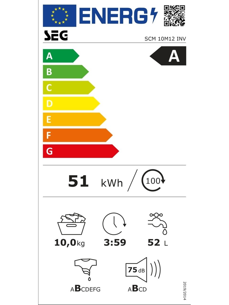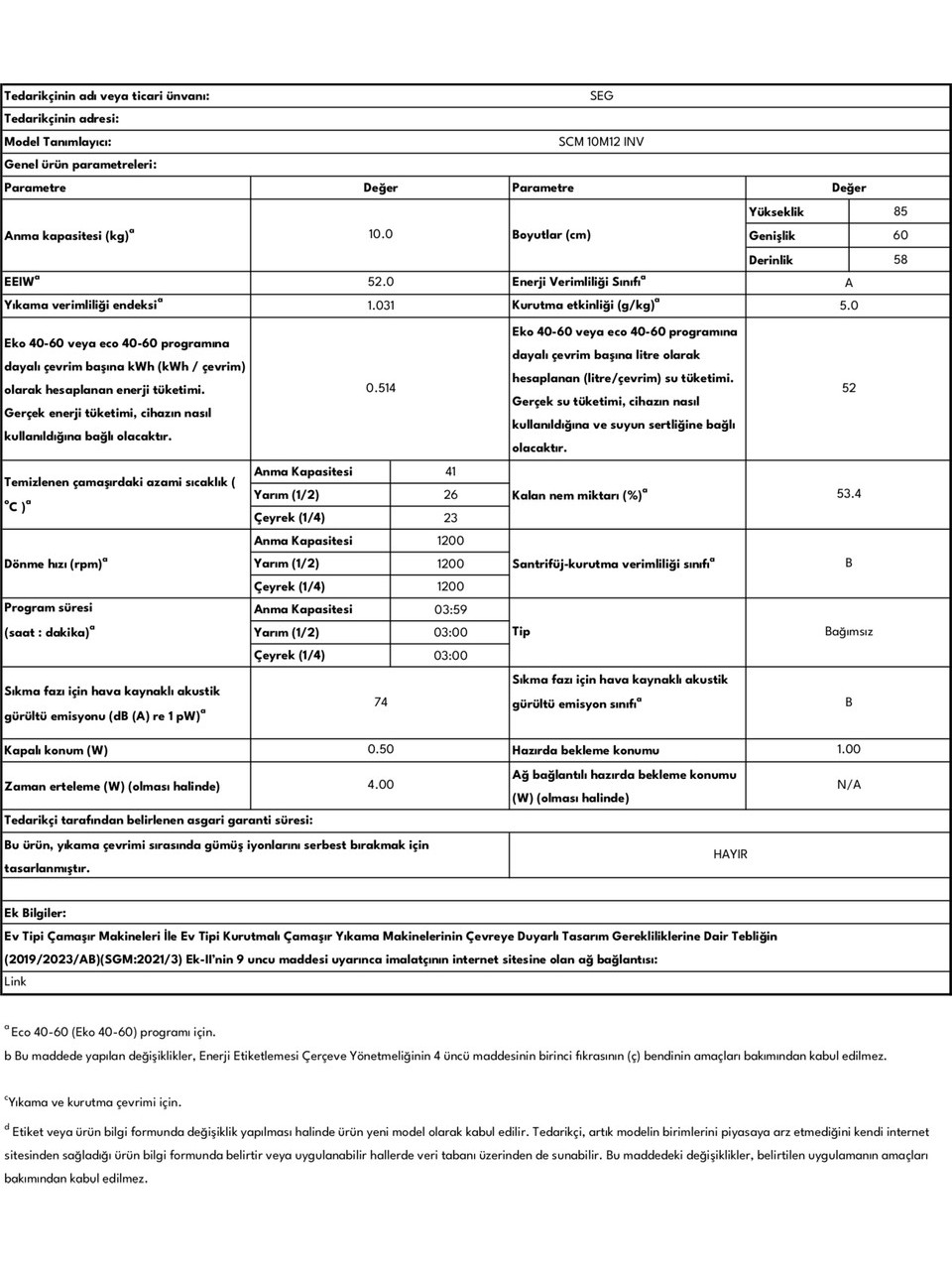 - SEG Scm 10M12 Inv 10 Kg 1200 Devir Inverter Buharlı Yıkama Özellikli Çamaşır Makinesi