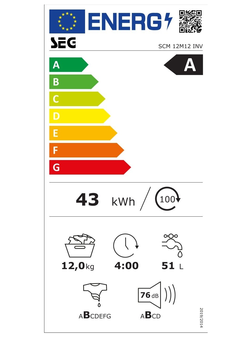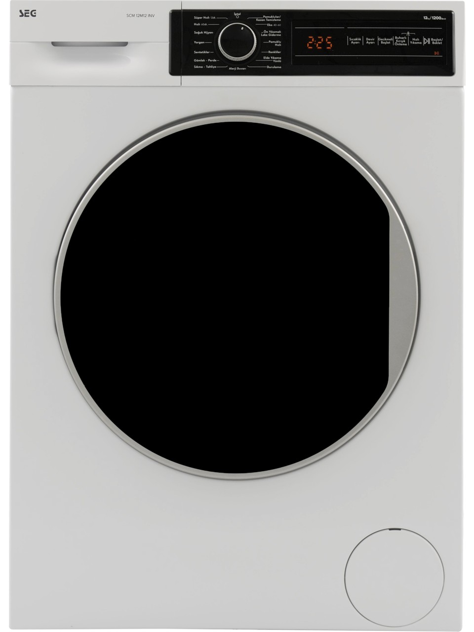 - SEG Scm 12M12 Inv SEG 12 Kg 1200 Devir Inverter Buharlı Yıkama Özellikli Çamaşır Makinesi