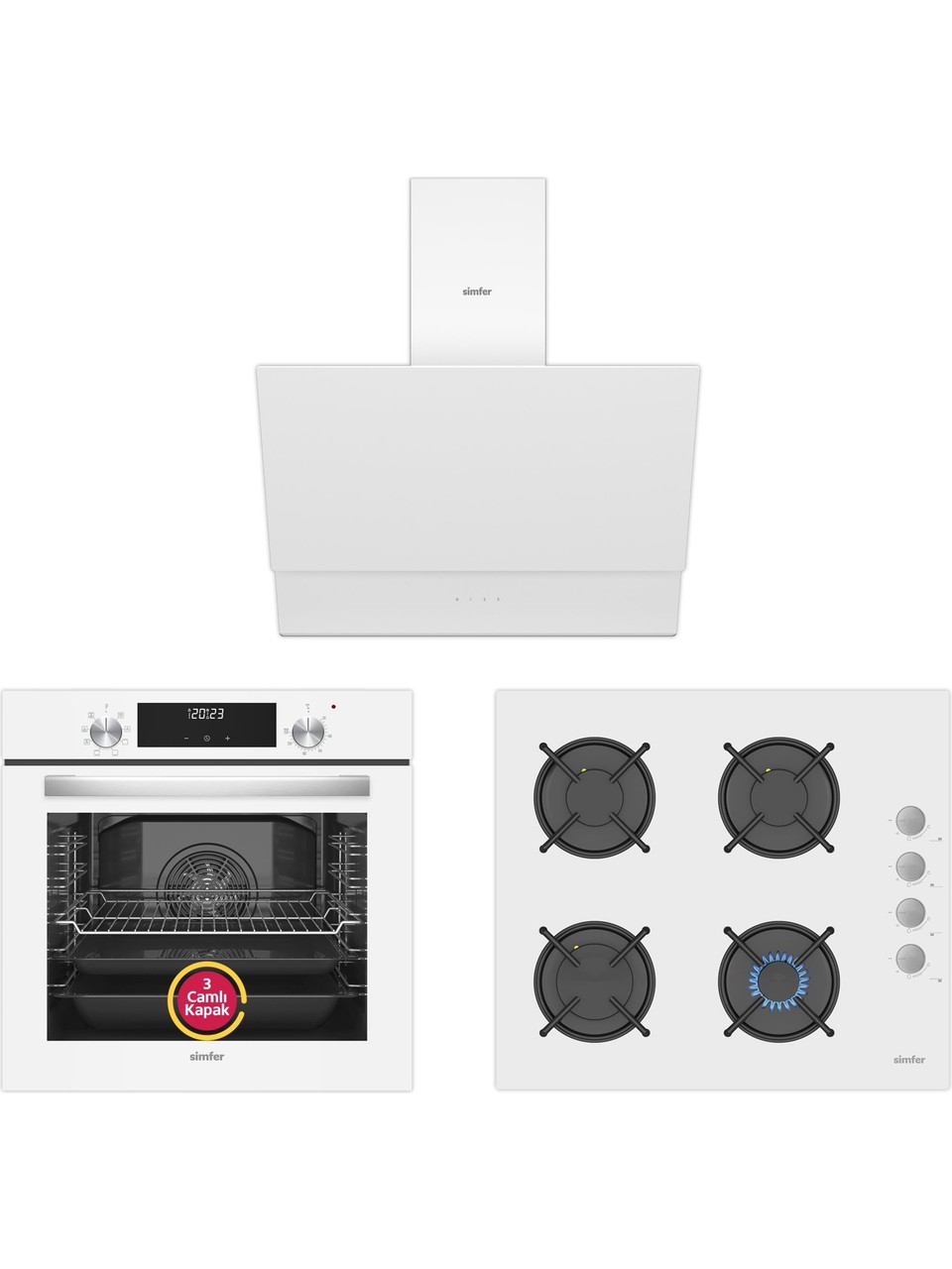 - Simfer 9 Fonksiyon Qs Dijital Beyaz Ankastre Set (8209 Fırın + 3507 Ocak + 8704 Davlumbaz)