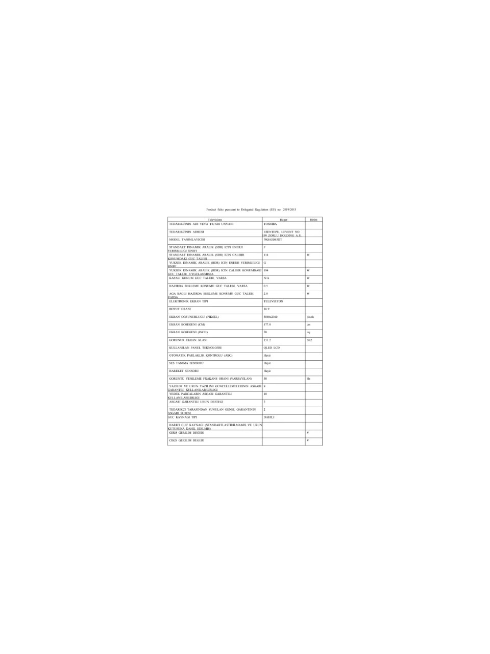 - Toshiba 70QA5D63DT 70" 178 Ekran Dahili Uydu Alıcılı 4K Ultra HD Smart QLED TV