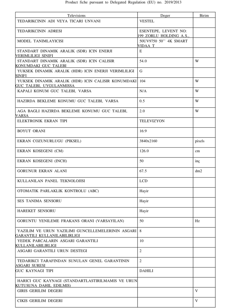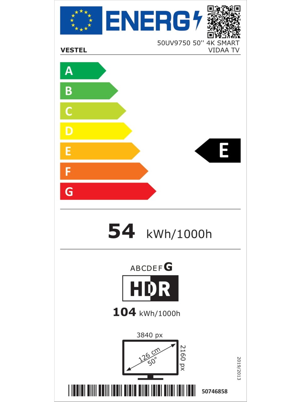 - Vestel 50UV9750 50'' 126 Ekran Uydu Alıcılı 4K Ultra HD Smart VİDAA TV