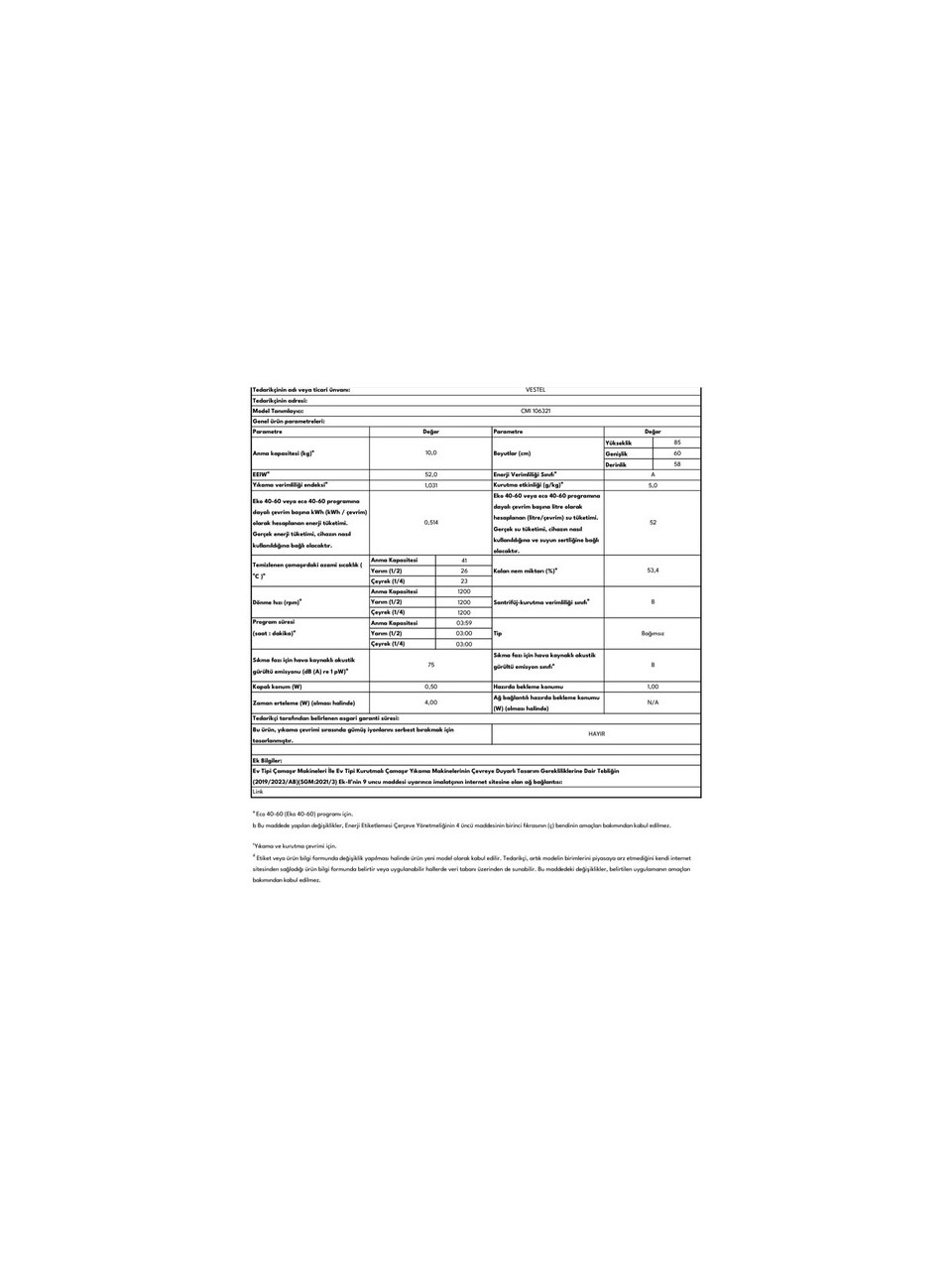 - Vestel CMI 106321 10 Kg 1200 Devir Çamaşır Makinesi